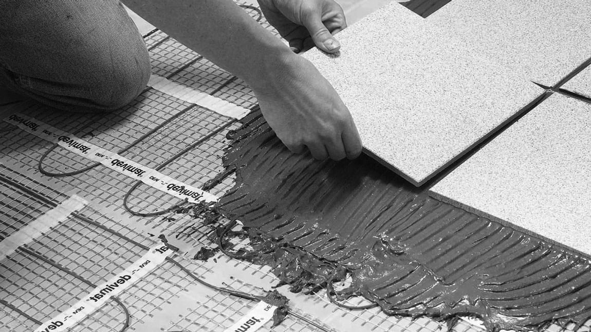 Lepidlo na dlaždice se nanáší na již hotový potěr a zpracovává plochu ne více než metr čtvereční najednou.