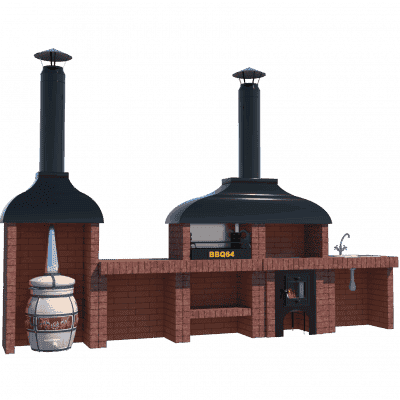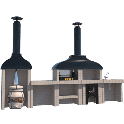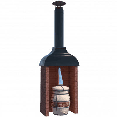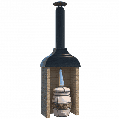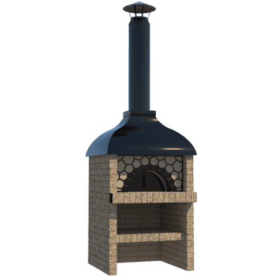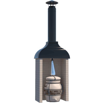 Kotlíková trouba je grilovací prvek pro vaření v kotli o objemu 10-12 litrů. Topeniště je vyrobeno z 3-5mm oceli a je celé vyzděné šamotovými cihlami, které vám umožní udržet teplo po dlouhou dobu a nasytit jím vaše nádobí. Dvířka pece mají průhledové okénko s efektem “čirého skla”, takže tato kamna lze použít jako krb a sledovat proces spalování. Litinovým ventilem je navíc možné upravit přívod kyslíku. V pracovní desce je zabudována litinová deska s kroužky pro kotlík různých průměrů. Vzhledem k hoření topeniště lze kamna použít jako tandoor nebo miniruská kamna. Komín prochází uvnitř topeniště a jde do sendvičové trubky.