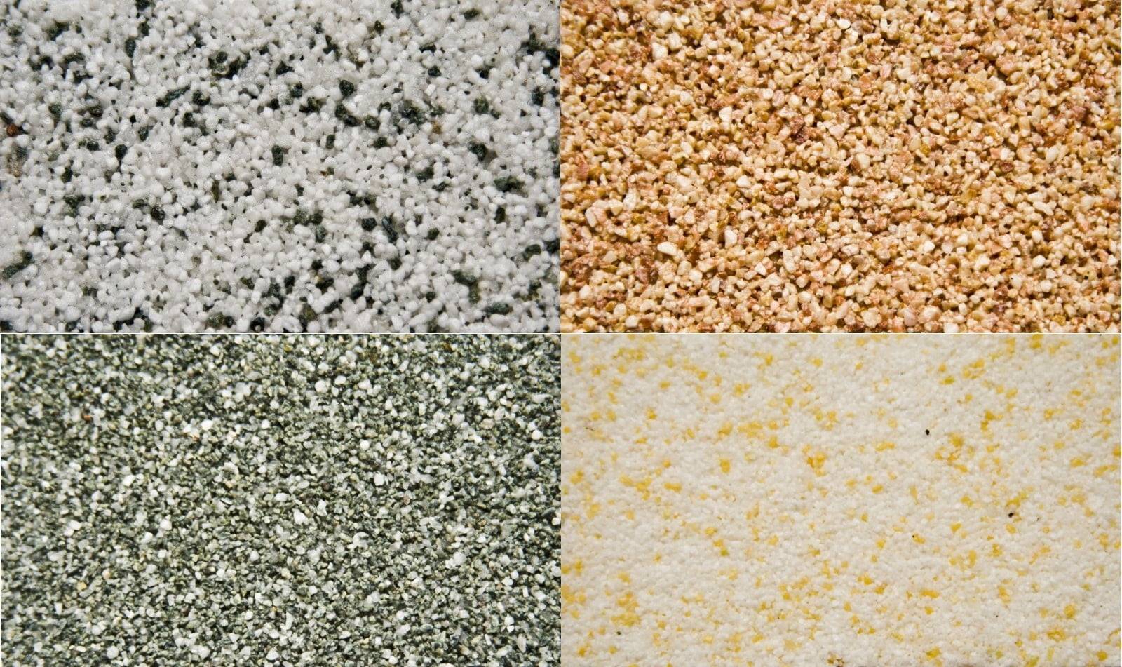 Jak již bylo zmíněno, základ směsi může být odlišný. Pojďme se podívat na pět typů základů, které lze použít k vytvoření neobvyklé, jedinečné hrubé povrchové úpravy, která připomíná přírodní motivy.