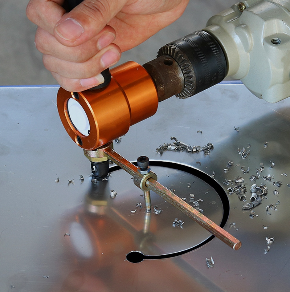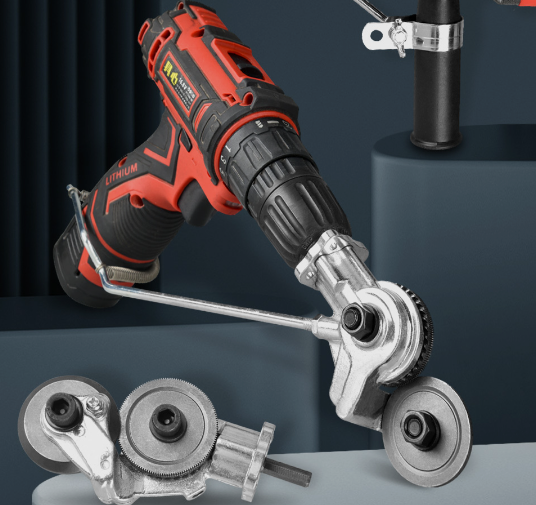 Tento nástavec vyniká při řezání plechu. Má mnoho spokojených uživatelů. Je pravda, že existuje několik recenzí, které byly shromážděny nesprávně. V každém případě se jedná o zajímavou možnost, jak si vrtačku vylepšit. Stavebnice obsahuje veškeré potřebné nářadí pro montáž a rukojeť. Stojí za zmínku. Na výběr jsou dvě šarže: na šroubovák a na vrtačku, nezaměňovat.