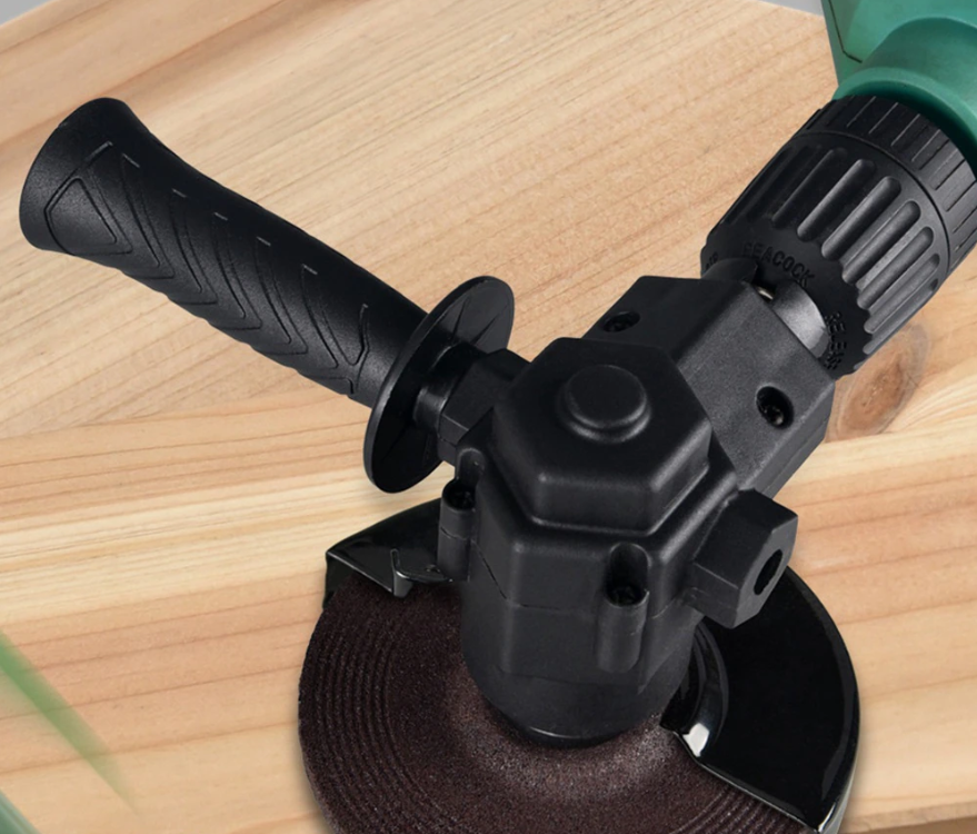 Tato tryska obecně mění všechny představy o nástroji. Umožňuje vám používat vaši vrtačku jako úhlovou brusku. Rychlé dodání z Ruské federace neexistuje, ale recenze hovoří o rychlém dodání. Pro bezpečné uchopení slouží klasická rukojeť úhlové brusky. Navíc je nakresleno použití této trysky pro vytvoření stroje s kotoučovou pilou.